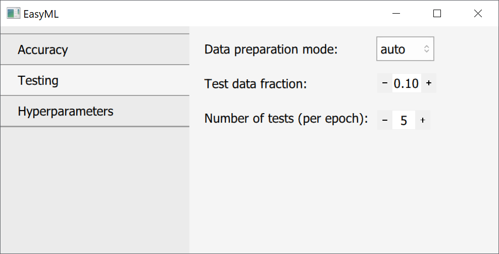 Number of test - a number of tests to be done each epoch at equal intervals.