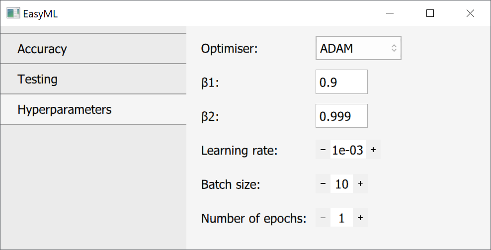 Optimiser - an optimiser that should be used during training. ADAM usually works well for all cases.